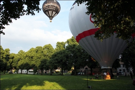 Photo : envol de montgolfières depuis la Place Communale de Céroux